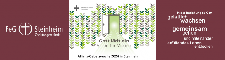Allianz Gebetswoche bei uns im Haus Vision für Mission Am Sonntag, den 07. Januar startete die diesjährige Allianz Gebetswoche unter dem Motto „Gott lädt ein – Vision für Mission“. Der gemeinsame Gottesdienst der… Zum Beitrag