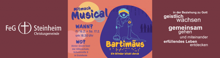 Bartimäus Musical 2024 „Jesus ist ein starker Gott, er kann dir immer helfen. Er ist ein treuer Freund, der beste den es für dich gibt!“ Voller Inbrunst, fröhlich und kräftig erklang dieses Lied… Zum Beitrag