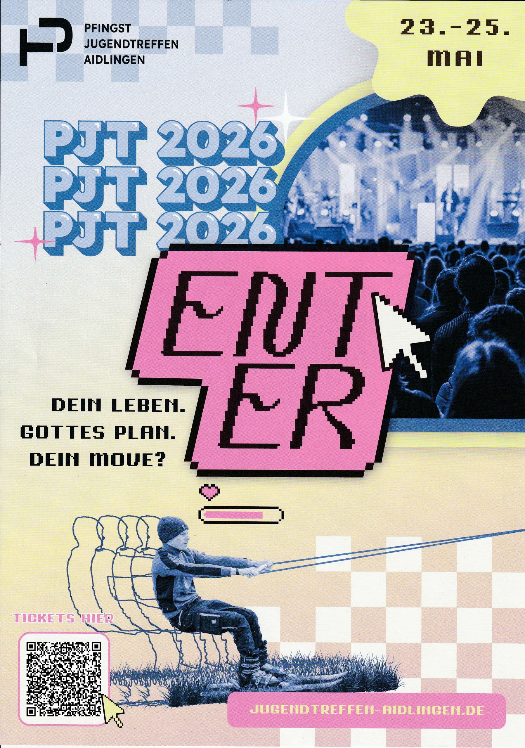 Pfingstjugendtreffen (PJT) 2026 8. März 2026 HIER ZUM PFINGSTJUGENDTREFFEN (PJT) 2025 ANMELDEN Flyer als Bild Download Vorheriger Beitrag Nächster Beitrag