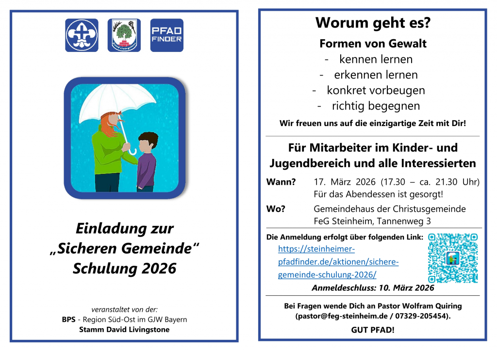 Sichere Gemeinde Schulung 2026 Flyer als Bild Download HIER ZUR SICHEREN GEMEINDE SCHULUNG 2026 ANMELDEN Vorheriger Beitrag Nächster Beitrag